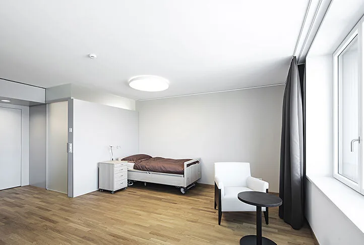 - Komfortable Pflegezimmer Moderne, helle Zimmer mit hoher Privatsphäre.